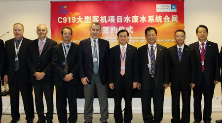 中國經(jīng)濟網(wǎng)訊 2012年7月9日范堡羅航展開幕當(dāng)天,中國商飛公司在航展現(xiàn)場就C919大型客機項目與美國蒙諾格公司(Monogram)簽署水/廢水系統(tǒng)采購合同。這表明C919大型客機項目工程發(fā)展階段工作正全面展開。