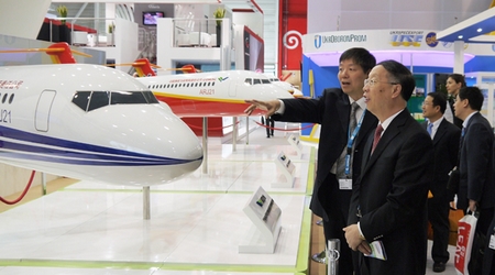 在中國商飛公司展區(qū),蘇波認真察看了C919大型客機混合級布局以及ARJ21-700飛機混合級、全經(jīng)濟級、行政機和公務機布局模型,聽取了公司兩大型號的最新研制進展、能力建設、人才隊伍建設、國際合作、民機產(chǎn)業(yè)體系建設等方面情況的匯報。蘇波表示,中國商飛公司成立5年來取得的成績令人鼓舞,工信部將一如既往地支持中國商飛公司的發(fā)展建設,希望中國商飛公司再接再厲、奮力拼搏,爭取早日取得大型客機項目的成功。
