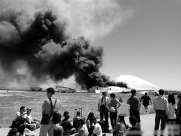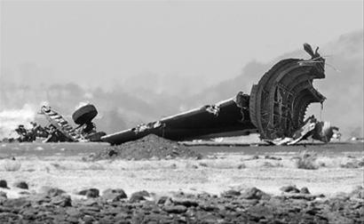 一些目擊者告訴當?shù)仉娨暸_,這架波音777-200型客機最初降落正常,后因起落架出現(xiàn)異常,機尾著地,一些飛機部件脫落,飛機偏離跑道,起火燃燒。