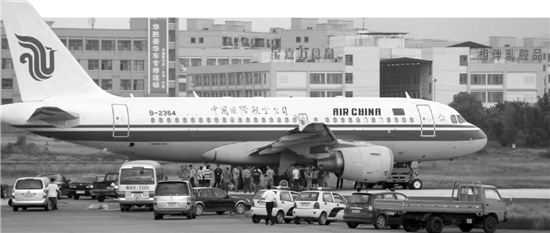 昨天中午,義烏飛往成都的國(guó)航CA4538航班滑出跑道,停在瀝青輔道上動(dòng)彈不得