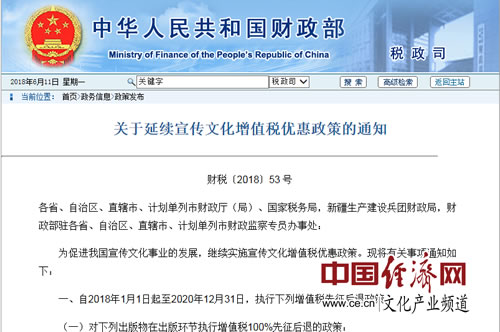 經(jīng)濟(jì)日報(bào)-中國經(jīng)濟(jì)網(wǎng)北京6月12日訊 近日,財(cái)政部和稅務(wù)總局聯(lián)合發(fā)布了關(guān)于延續(xù)宣傳文化增值稅優(yōu)惠政策的通知(以下簡稱“通知”)。經(jīng)濟(jì)日報(bào)-中國經(jīng)濟(jì)網(wǎng)記者發(fā)現(xiàn),各類出版物在出版環(huán)節(jié)執(zhí)行增值稅先征后退至少50%。