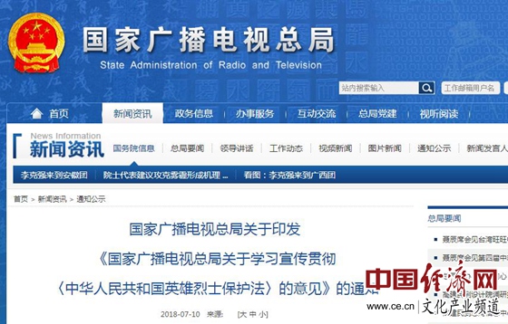 《國家廣播電視總局關于學習宣傳貫徹〈中華人民共和國英雄烈士保護法〉的意見》已經2018年6月29日國家廣播電視總局局務會議審議通過,現(xiàn)印發(fā)給你們,請接本通知后,立即轉發(fā)相關單位認真貫徹執(zhí)行,對執(zhí)行過程中發(fā)現(xiàn)的相關問題及時上報總局。