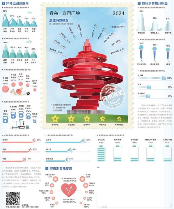 近年來,青島打造了多個旅游IP,每到節(jié)假日,棧橋、太平角、八大關(guān)、五四廣場等景點,都會人頭攢動。影音娛樂、攝影攝像類產(chǎn)品的增長,顯現(xiàn)出青島著名旅游城市的底色。人氣足,消費旺,文旅深度融合進(jìn)一步激發(fā)了消費活力。