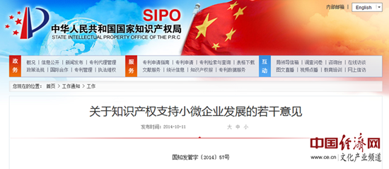 中國(guó)經(jīng)濟(jì)網(wǎng)北京10月14日訊 中國(guó)經(jīng)濟(jì)網(wǎng)文化產(chǎn)業(yè)頻道記者從國(guó)家知識(shí)產(chǎn)權(quán)局網(wǎng)站獲悉,國(guó)家知識(shí)產(chǎn)權(quán)局近日印發(fā)了《關(guān)于知識(shí)產(chǎn)權(quán)支持小微企業(yè)發(fā)展的若干意見》(以下簡(jiǎn)稱《意見》)。據(jù)中國(guó)經(jīng)濟(jì)網(wǎng)文化產(chǎn)業(yè)頻道記者了解,該《意見》從扶持小微企業(yè)創(chuàng)新發(fā)展、完善小微企業(yè)知識(shí)產(chǎn)權(quán)服務(wù)、提高小微企業(yè)知識(shí)產(chǎn)權(quán)運(yùn)用能力、優(yōu)化小微企業(yè)知識(shí)產(chǎn)權(quán)發(fā)展環(huán)境4個(gè)方面,提出了支持小微企業(yè)創(chuàng)新成果在國(guó)內(nèi)外及時(shí)獲權(quán)、完善小微企業(yè)專利資助政策、扶持知識(shí)產(chǎn)權(quán)服務(wù)業(yè)小微企業(yè)等15條具體措施。