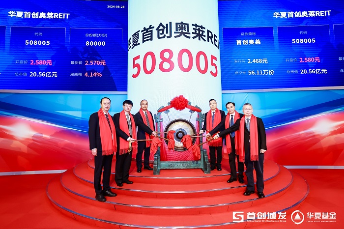 8月28日,首單以奧特萊斯作為底層資產(chǎn)的消費REITs——華夏首創(chuàng)奧萊REIT(基金代碼:508005)正式在上交所上市。北京市國有資產(chǎn)監(jiān)督管理委員會、山東省發(fā)展改革委、湖北省發(fā)展改革委、山東省濟(jì)南市歷城區(qū)政府等有關(guān)領(lǐng)導(dǎo),北京首都創(chuàng)業(yè)集團(tuán)有限公司黨委書記、董事長劉永政,中信證券股份有限公司執(zhí)行委員、全球投資銀行管理委員會主任馬堯,華夏基金管理有限公司總經(jīng)理李一梅及托管銀行、合作機(jī)構(gòu)、投資者代表出席基金上市儀式。