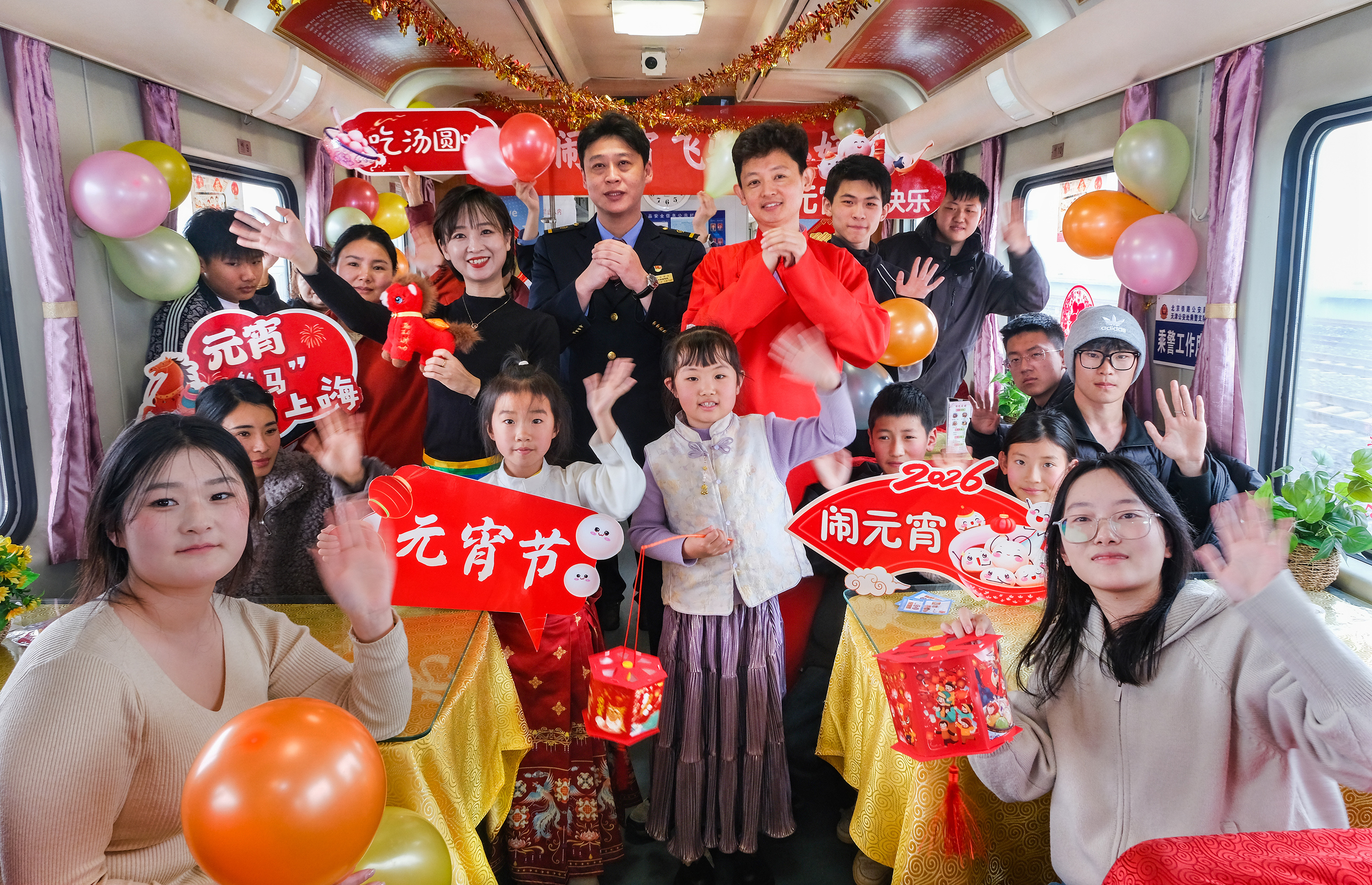 3月2日,元宵佳節(jié)來臨之際,在天津站開往廣州白云站的T253次列車上,國鐵北京局天津客運(yùn)段開展的“喜樂鬧元宵 飛馳向美好”活動(dòng)溫情啟幕,為乘客打造沉浸式節(jié)日民俗體驗(yàn)。