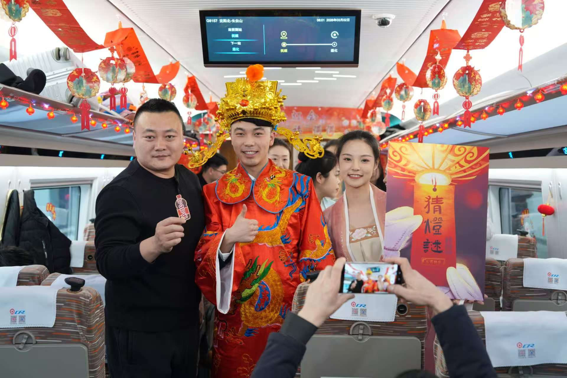 在G8157次列車上,一場“高鐵看燈會(huì) 元宵福滿滿”元宵節(jié)特色活動(dòng)也正在上演,國鐵沈陽局沈陽客運(yùn)段動(dòng)車一隊(duì)的乘務(wù)人員與旅客歡聚一堂,用歡聲笑語編織出一段溫馨難忘的旅途記憶。