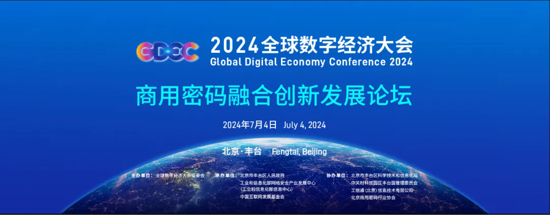 7月4日,2024全球數(shù)字經(jīng)濟(jì)大會(huì)商用密碼融合創(chuàng)新發(fā)展論壇即將啟幕!誠(chéng)邀產(chǎn)業(yè)各界伙伴共聚豐臺(tái),攜手并進(jìn),共繪商密新篇章!