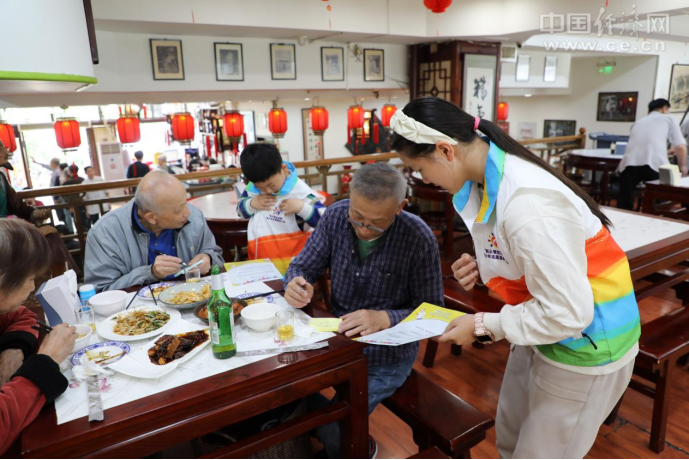4月20日,“制止餐飲浪費(fèi)”青少年志愿服務(wù)行動(dòng)第三場(chǎng)活動(dòng)在老北京炸醬面大王餐廳(崇文門店)舉行。