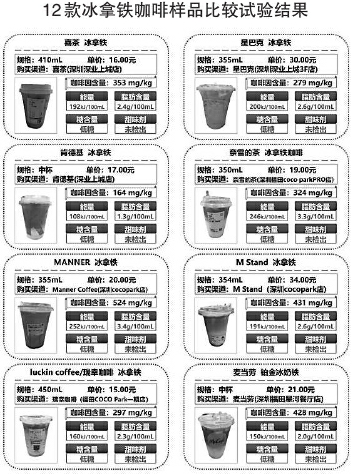 相比而言,12款冰拿鐵咖啡樣品的糖含量、脂肪、能量的檢測數(shù)值比冰美式咖啡樣品要高,但12款冰拿鐵咖啡樣品的糖含量均達(dá)到標(biāo)準(zhǔn)的“低糖”要求。