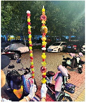 “從50cm到150cm都可訂制,最近開始在網(wǎng)上走紅,不少人覺(jué)得拍照好看。”店主李女士介紹,每天都是滿單,一周能賣上百串。從早穿到晚都忙不過(guò)來(lái),需要提前兩天預(yù)訂。