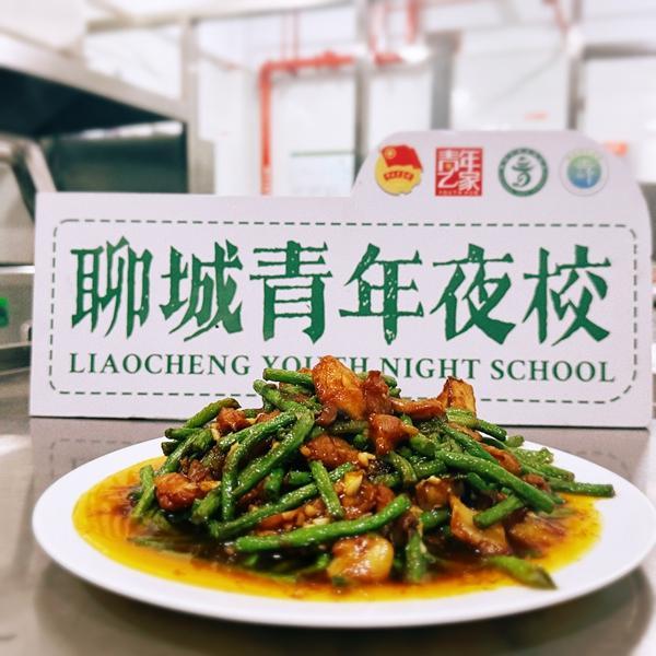 2024年11月,山東聊城青年夜校,由年輕人學習制作的一份豆角燒茄子。
