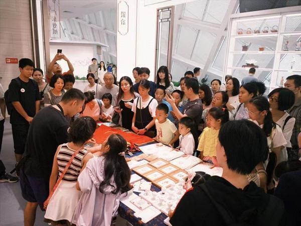 2024年7月,廣東省非物質(zhì)文化遺產(chǎn)館,游客在“解憂年畫鋪”了解佛山木版年畫。