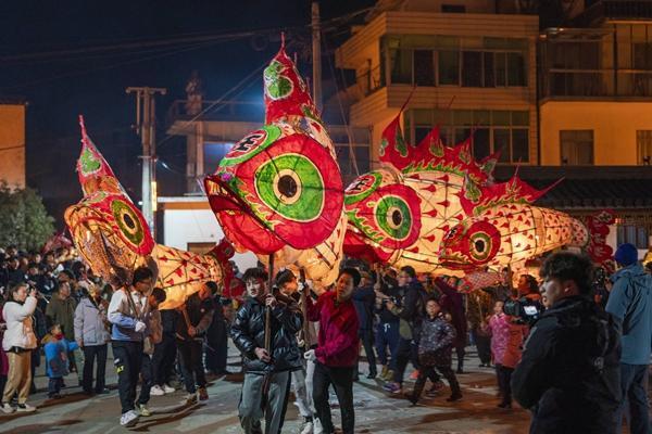 2010年前后,有600多年歷史的汪滿田魚燈因為年輕人的記錄而開始“出圈”。一名編導專業(yè)的大一學生回歙縣奶奶家過年,聽老人講起汪滿田村的“嬉魚燈”,進村拍攝紀錄片《不嬉不行》。如今,汪滿田魚燈已火遍全網(wǎng),讓很多人對年年有“魚”的愿望有了具象呈現(xiàn)。