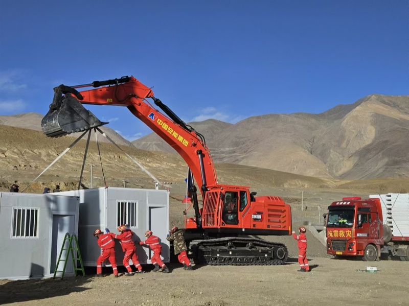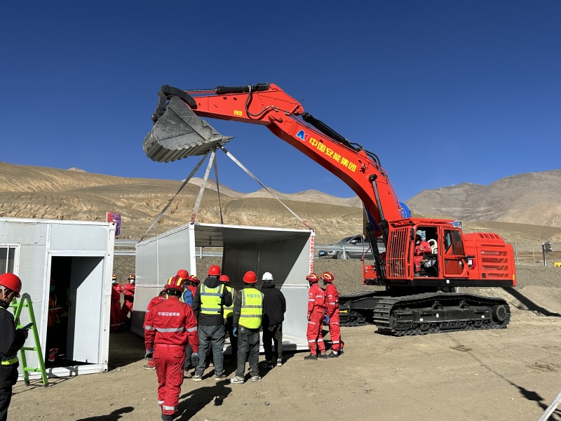 1月9日,在前方指揮部的統(tǒng)一調(diào)度下,繼完成受損房屋搜尋、用電需求保障、安置帳篷搭設(shè)、協(xié)助轉(zhuǎn)運(yùn)重傷員等任務(wù)后,為了保障受災(zāi)群眾溫暖過(guò)冬,中國(guó)安能在嘎旦村、玉白村方向組織開(kāi)展場(chǎng)地平整作業(yè),并進(jìn)行活動(dòng)板房的搭設(shè)。在嘎旦村投入60余人、10余臺(tái)重型救援裝備全力投入板房搭設(shè)工作。過(guò)程中,挖掘機(jī)、吊機(jī)等重型裝備與救援人員共同協(xié)作,搭建工作進(jìn)展迅速。