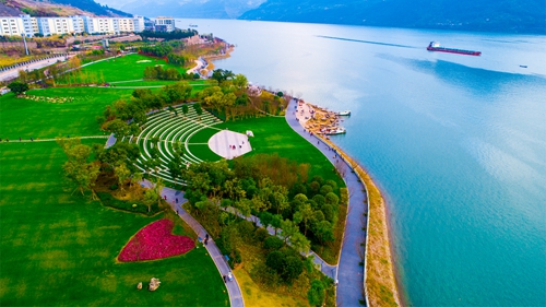 云陽縣濱江公園開闊整潔的月光草坪緊鄰長(zhǎng)江,綠草如茵,綠樹成蔭,自行車道、跑步道、漫步道、驛站等休閑設(shè)施一應(yīng)俱全,是這座移民新城的重要休閑娛樂場(chǎng)所。漫步月光草坪,42歲的庫(kù)區(qū)移民鐘燕興奮地指點(diǎn)著說,白天市民跑步鍛煉、釣魚游泳,晚上休閑散步、跳廣場(chǎng)舞,日子安逸得很!