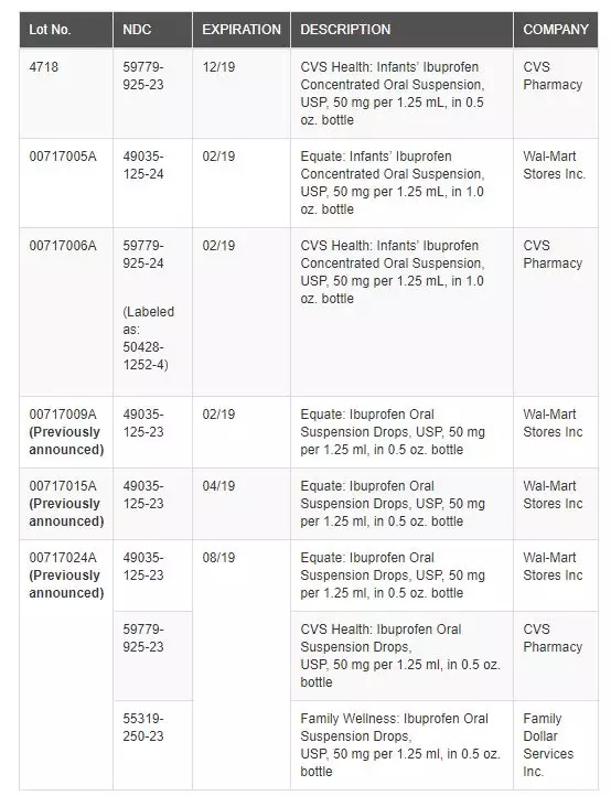 該公司在一份聲明中說,召回是基于健康危害評估。濃度較高的布洛芬“可能出現(xiàn)的不良反應(yīng)是惡心,嘔吐,上腹部疼痛,或更罕見的腹瀉。甚至耳鳴,或耳鳴,頭痛和胃腸道出血。”