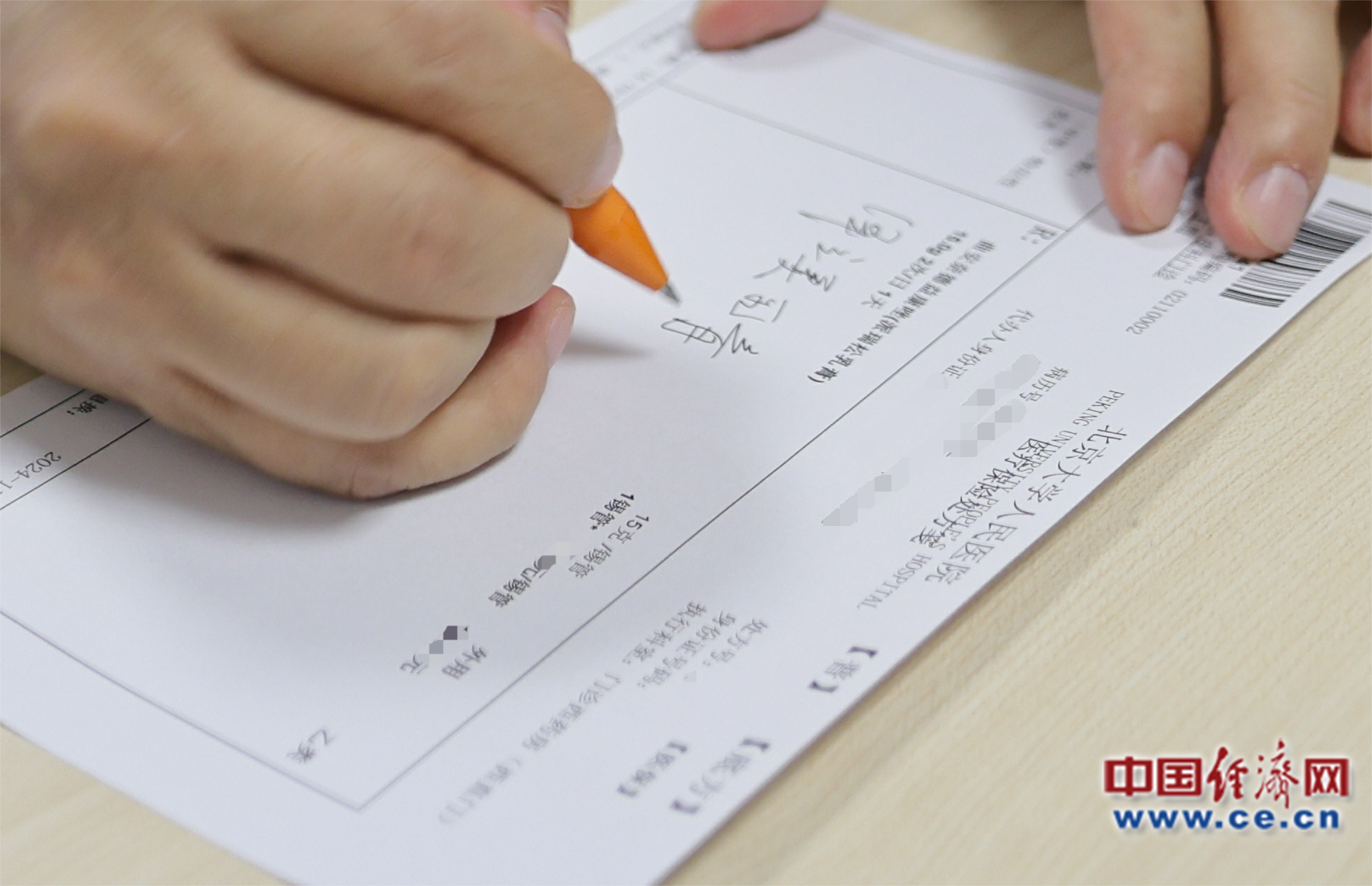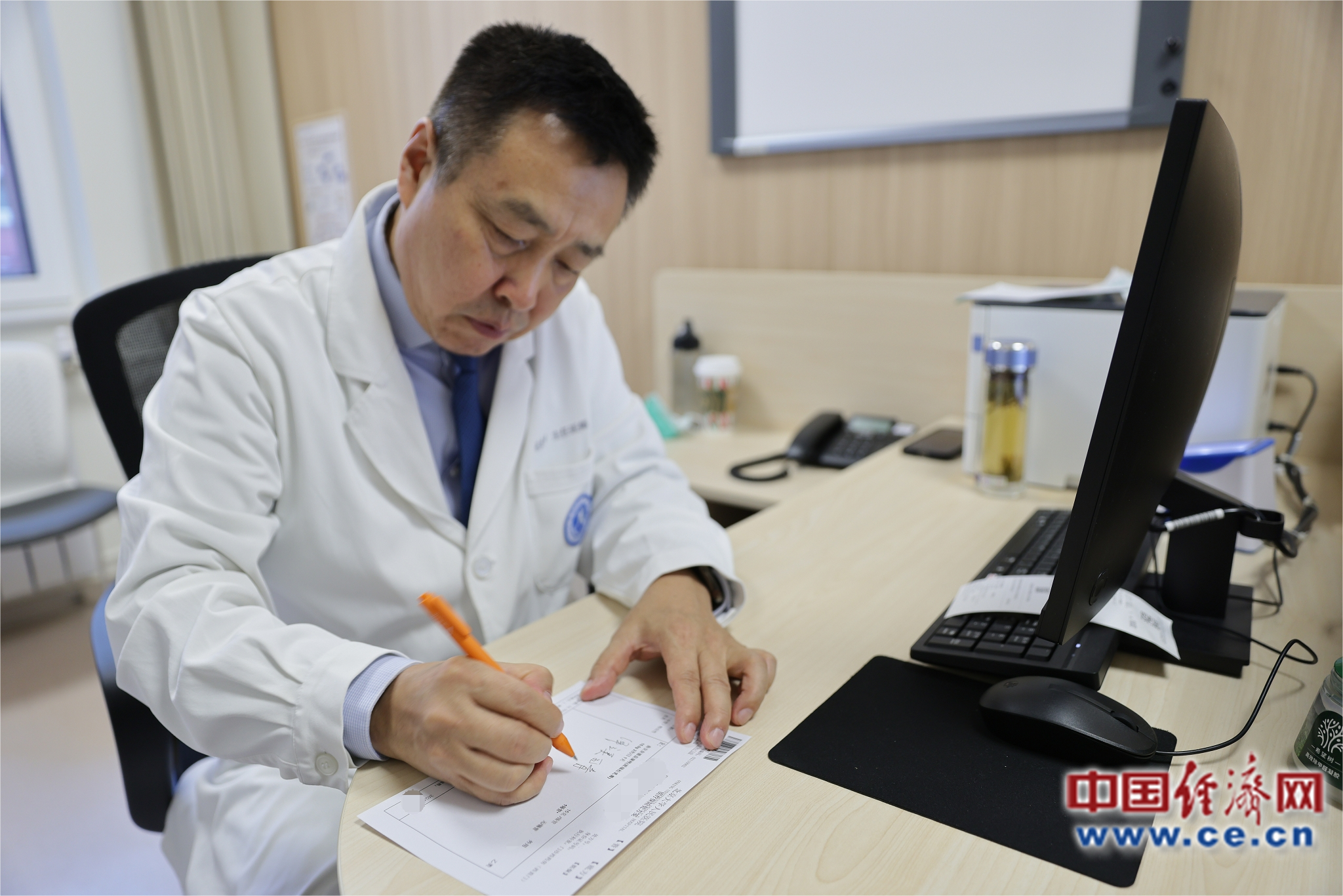 圖為北京大學(xué)人民醫(yī)院皮膚科張建中教授為患者開出首張?zhí)幏?中國經(jīng)濟(jì)網(wǎng)裴小閣攝
