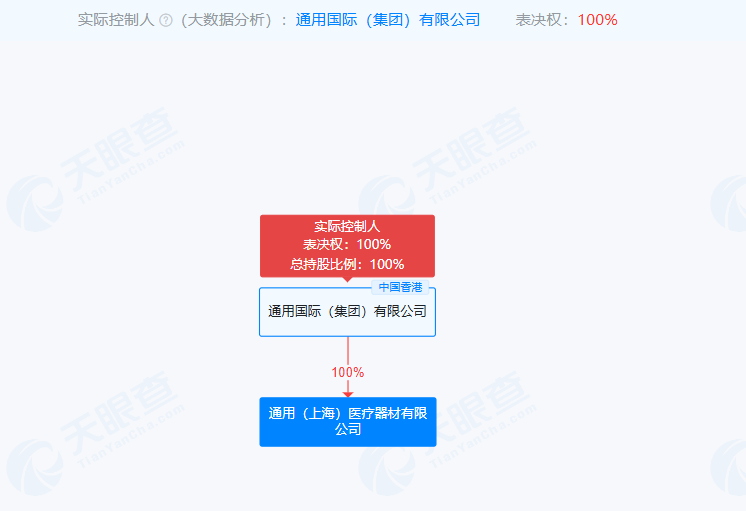 據(jù)天眼查,通用(上海)醫(yī)療器材有限公司成立于1996年,系通用國際(集團(tuán))有限公司全資子公司。
