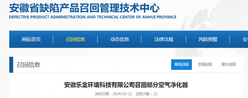 2024年03月22日 09:34   來(lái)源:安徽省缺陷產(chǎn)品召回管理技術(shù)中心網(wǎng)站