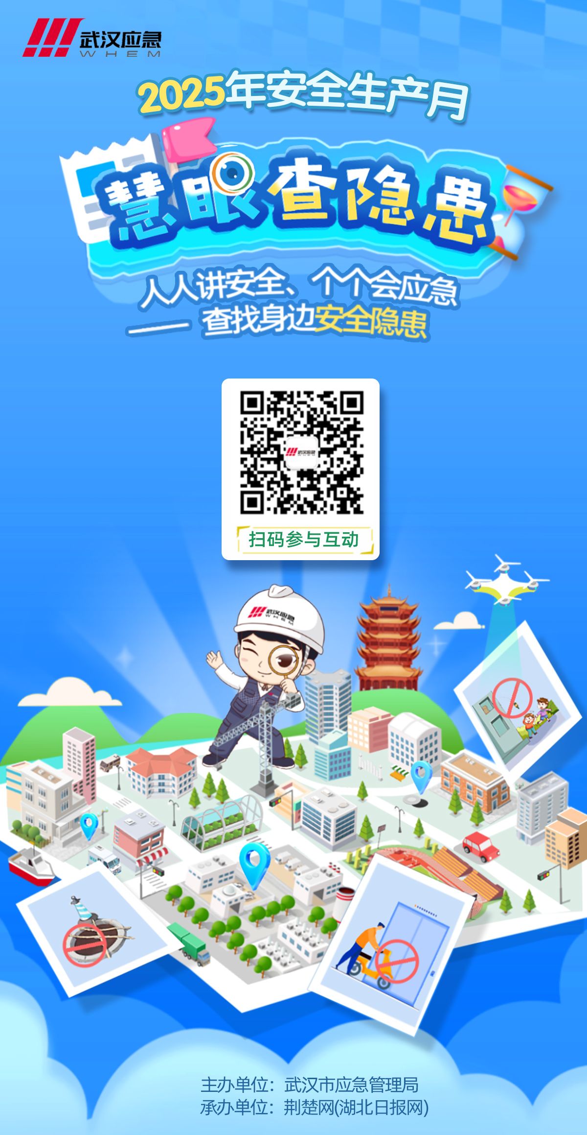 武漢市應急管理局相關負責人表示,“慧眼查隱患”線上活動是深入推進安全宣傳“五進”、深化“安全生產月”活動的一次創(chuàng)新實踐。廣大公眾可通過游戲闖關的形式,進一步學習安全知識,主動查找身邊安全隱患,營造“人人講安全、個個會應急”的良好氛圍。