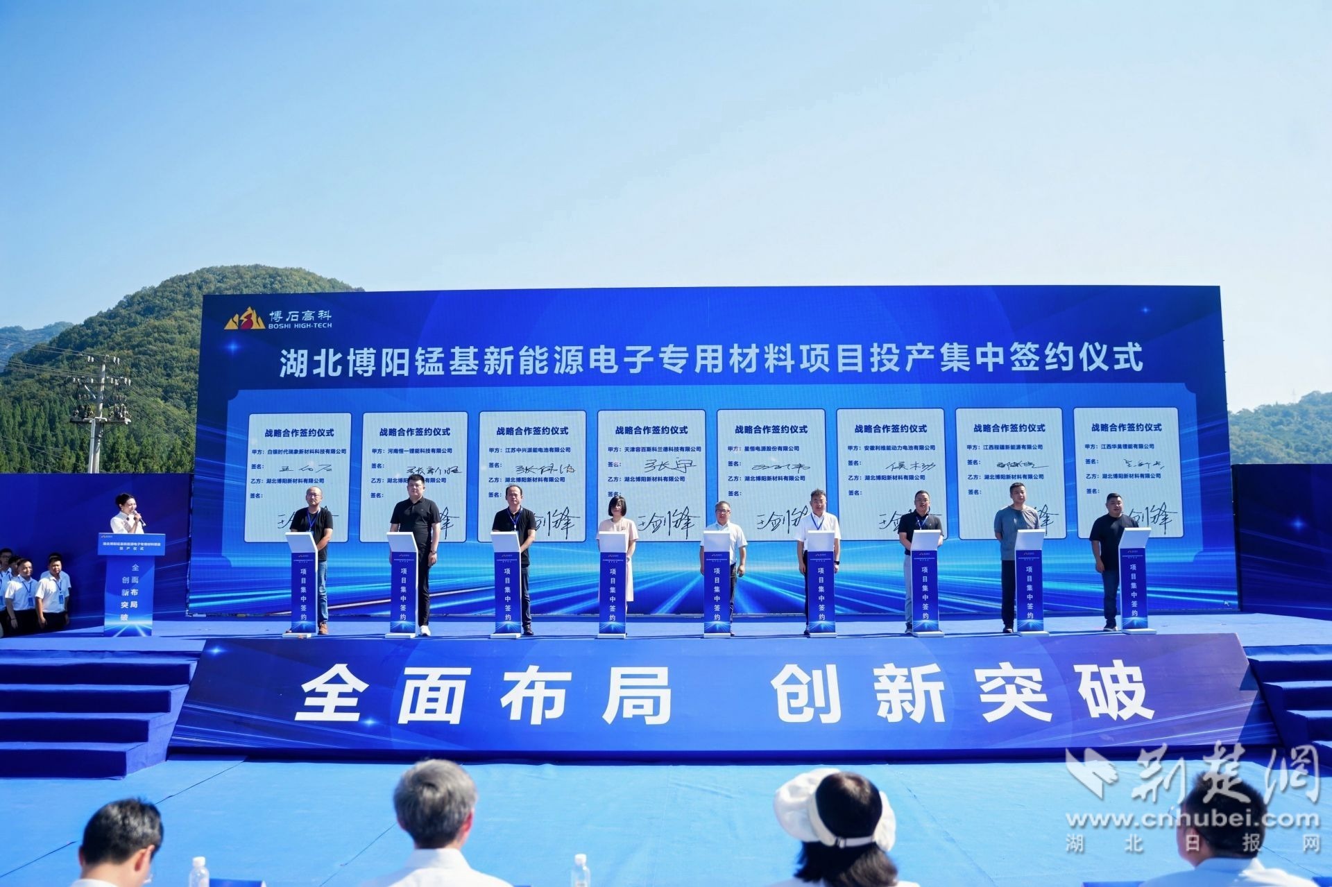 湖北博陽(yáng)錳基新能源電子專用材料項(xiàng)目投產(chǎn)集中簽約儀式。(黃婉蓉 攝)