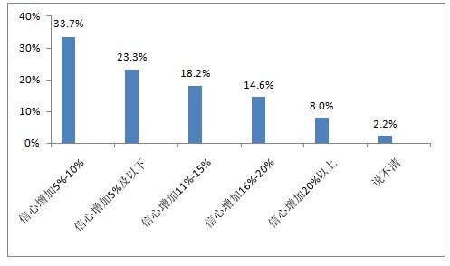 在認為未來一年食品安全狀況會改善的市民中,信心增加程度為5%~10%的市民人數(shù)最多,占到了33.7%,其次是信心增加程度低于5%的市民,有23.3%。