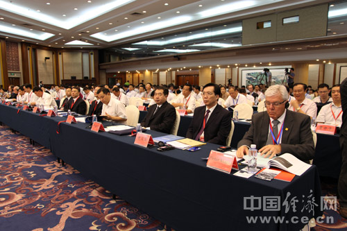 由中國道路交通安全協會、中國汽車技術研究中心和中國經濟網共同主辦的“2013中國道路交通安全論壇”于8月29日在北京首都大酒店舉行。圖為2013中國道路交通安全論壇會場。中國經濟網 郝紅波 攝影