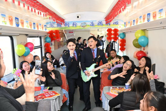 K2623次“濱疆號(hào)”列車是連接“北方明珠”大連與“東亞之窗”滿洲里的重要紐帶,縱貫沈陽(yáng)、長(zhǎng)春、哈爾濱、海拉爾等多座城市,不僅承載著旅客團(tuán)圓的期盼,也促進(jìn)著兩地文化交融與情感相連。春運(yùn)首日,列車長(zhǎng)劉森與乘警丁非凡共同主持活動(dòng),生動(dòng)闡釋“濱疆同行、連滿同心”的服務(wù)理念,讓旅客在旅途中深切感受列車文化與鐵路人的暖心相伴。