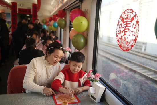 趣味互動(dòng)與安全科普并行,讓旅途安心亦有趣。活動(dòng)圍繞鐵路乘車常識(shí)與反詐知識(shí)設(shè)置兩輪有獎(jiǎng)問答,內(nèi)容涵蓋12306購(gòu)票流程、兒童票新規(guī)、電信詐騙防范等實(shí)用話題。旅客踴躍參與,答對(duì)者均獲贈(zèng)列車準(zhǔn)備的精美紀(jì)念品。乘警結(jié)合題目現(xiàn)場(chǎng)剖析詐騙手法與出行隱患,助力旅客筑牢安全意識(shí)。列車還為小朋友準(zhǔn)備了非遺剪紙和拓印福字體驗(yàn),孩子們?cè)趧?dòng)手創(chuàng)作中感受傳統(tǒng)年味,一幅幅紅艷剪紙、一張張飽滿“?!弊?,點(diǎn)亮了車廂,也傳遞出新春的美好祝愿。