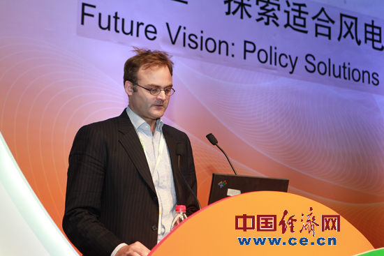 所謂的滲透率和普及率,在全國來看確實(shí)很低,但我們看一下內(nèi)蒙古等地區(qū),在國際標(biāo)準(zhǔn)來看它的滲透率也是很高的,去年內(nèi)蒙古的風(fēng)電滲透率可以與德國相比,風(fēng)能占總裝機(jī)容量的16%。在中國的管理問題更加突出,因?yàn)槔碚撋现v這樣地方的風(fēng)力資源更有優(yōu)勢,在發(fā)展風(fēng)電的時(shí)候要更好地統(tǒng)籌考慮。在內(nèi)蒙古火電站和風(fēng)場怎樣進(jìn)行統(tǒng)籌考慮,像德國這樣更好的并網(wǎng)。因?yàn)榈聡诓⒕W(wǎng)和利用風(fēng)能方面有更多的經(jīng)驗(yàn),德國的一些工作已經(jīng)走在了中國前面,有些事情在德國已經(jīng)順理成章,在中國還沒有這樣。我們發(fā)現(xiàn)鑒于中國已經(jīng)進(jìn)行的開發(fā)活動,像內(nèi)蒙古這樣風(fēng)力資源充沛的地方,在近期可能會成為世界上風(fēng)能普及率最高的地方之一,成為全世界的佼佼者。在內(nèi)蒙古這樣的地方,占中國總體風(fēng)力市場的35%左右。在這樣的地區(qū)市場上,風(fēng)力資源非常充沛,與風(fēng)能相抗的只能是煤電。因此,我們面臨整合的問題。也就是怎樣將風(fēng)電和煤電進(jìn)行整合。一般來說煤電占500兆瓦,風(fēng)電也需要有類似的裝置,必須保證24小時(shí)都能夠利用風(fēng)能,這樣就可以保證風(fēng)電的供應(yīng)。如果有400兆瓦的風(fēng)機(jī)容量得到安裝,并進(jìn)行有效運(yùn)作,確實(shí)可以解決相關(guān)問題。