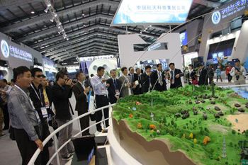 正在舉行的2010年珠海航展上,中國航天科技集團公司共設(shè)了三個展區(qū),即宇航展區(qū)、防務(wù)展區(qū)和航天技術(shù)應(yīng)用展區(qū)。