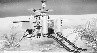 上部小車為月面巡視器模型,下為月面軟著陸探測器模型。我國探月工程二期將研制和發(fā)射月面軟著陸探測器和巡視器,開展月面探測活動,實現(xiàn)落月目標(biāo),也就是嫦娥三號任務(wù)。