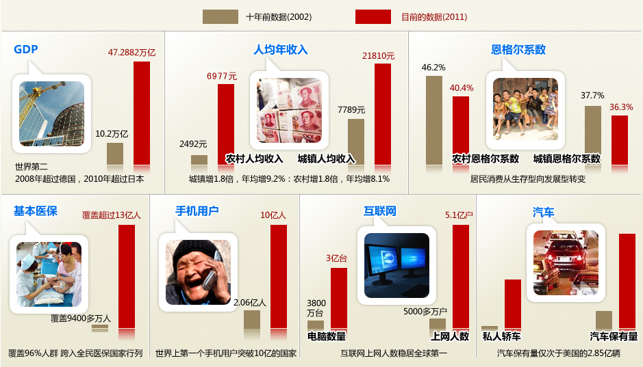 過去五年的工作和十年的基本總結(jié)胡錦濤說,十七大以來的五年,是我們?cè)谥袊?guó)特色社會(huì)主義道路上奮勇前進(jìn)的五年,是我們經(jīng)受住各種困難和風(fēng)險(xiǎn)考驗(yàn)